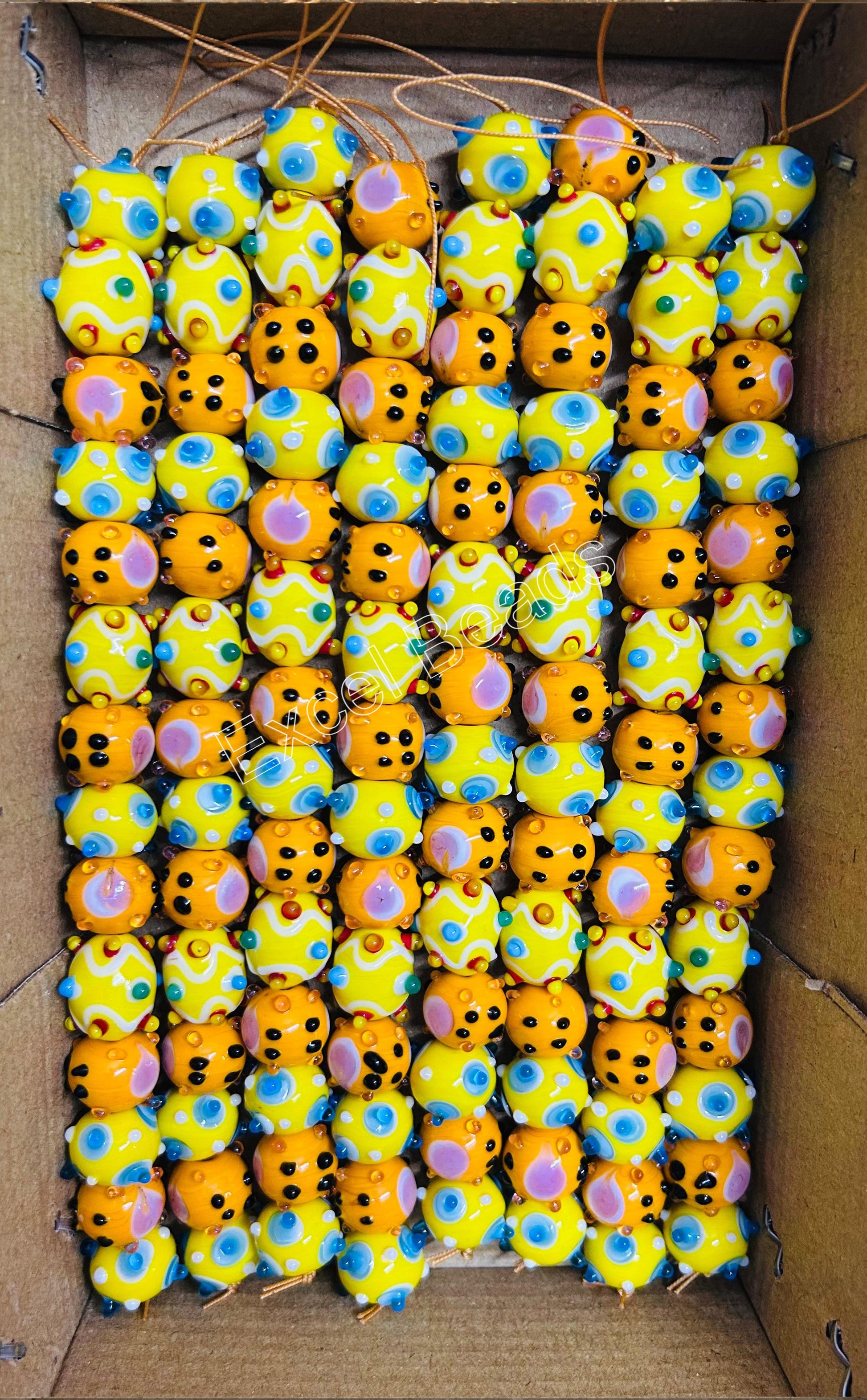 5 Strands Orange & Yellow Fancy Glass Beads - STR-0802